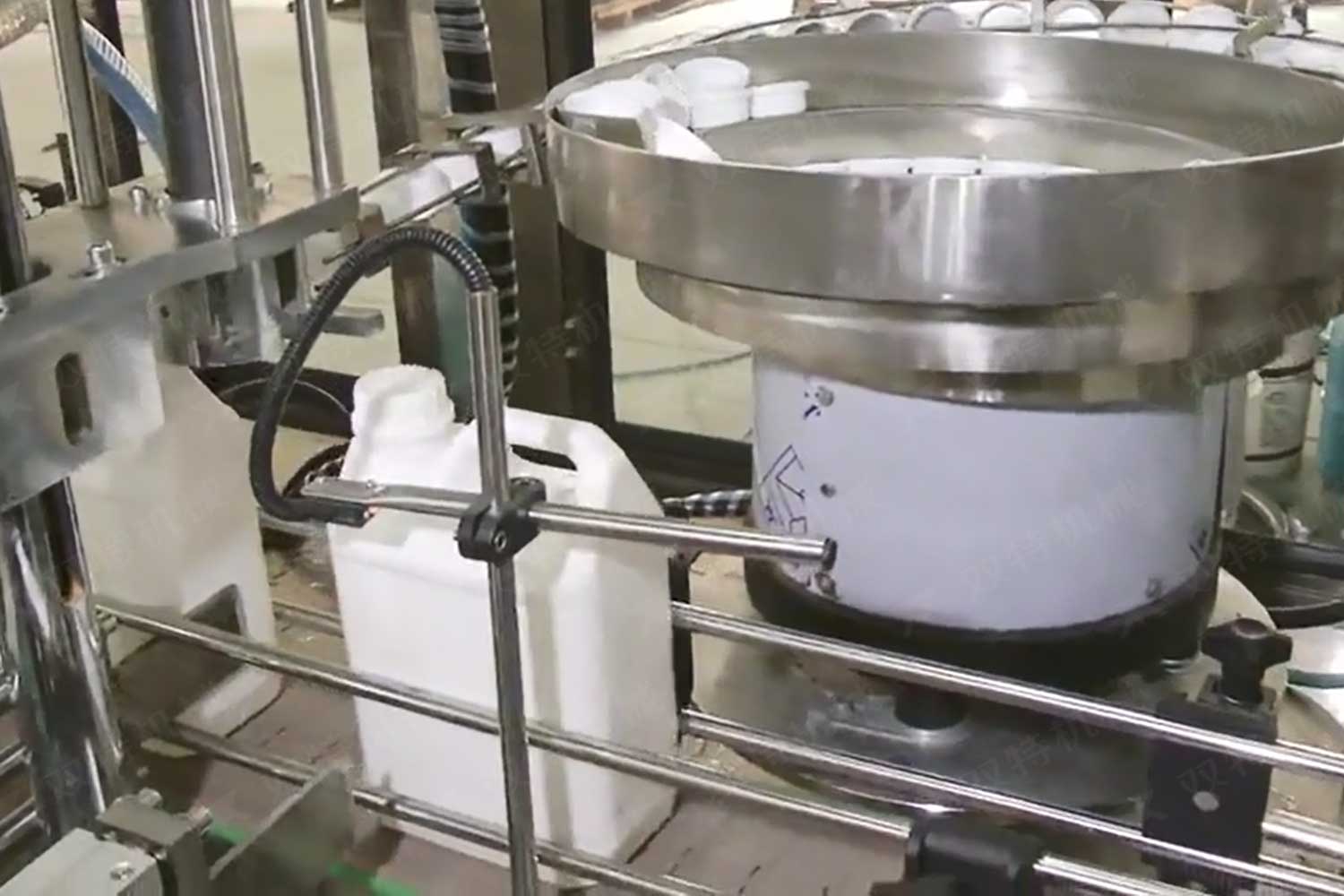 旋蓋機(jī)主要用于玻璃廣口瓶的三、四、六鐵蓋真空旋蓋,用兩根不同速度的皮帶壓瓶蓋,因兩根皮帶的速度不同,對(duì)蓋進(jìn)行搓蓋收緊達(dá)到旋蓋目的。在自動(dòng)上蓋之前對(duì)瓶口吹蒸汽加熱,吹掉冷空氣,換上高溫蒸汽,立即旋蓋,根據(jù)熱脹冷縮原理,蒸汽冷下來就自然形成了瓶?jī)?nèi)真空,達(dá)到了真空旋蓋的目的。自動(dòng)旋蓋機(jī)可以和濃醬灌裝機(jī)、蜂蜜灌裝機(jī)、辣椒醬灌裝機(jī)組合在一起,形成一套全自動(dòng)灌裝設(shè)備,是現(xiàn)代調(diào)味品企業(yè)的得力幫手。